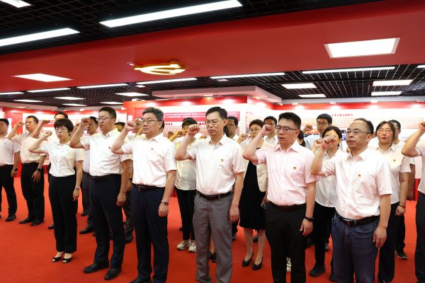 兩次參觀結束前,與會黨員面對黨旗,高擎右拳、莊嚴宣誓,堅定有力的誓言讓在場的每一位同志接受了一次深刻的黨性教育和靈魂洗禮。