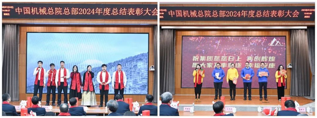 大會現(xiàn)場氣氛喜慶熱烈。《增信賦能 攜手同行》短片,回顧2024年豐碩成果、展望2025年發(fā)展前景。各部門以視頻方式送來新春祝福。大會向光榮在院30年、20年、10年的干部職工頒發(fā)紀念章;對涌現(xiàn)出的先進集體和優(yōu)秀個人進行了表彰。集團領(lǐng)導為獲獎代表頒獎,獲獎代表感言分享成長喜悅、表達美好祝福。