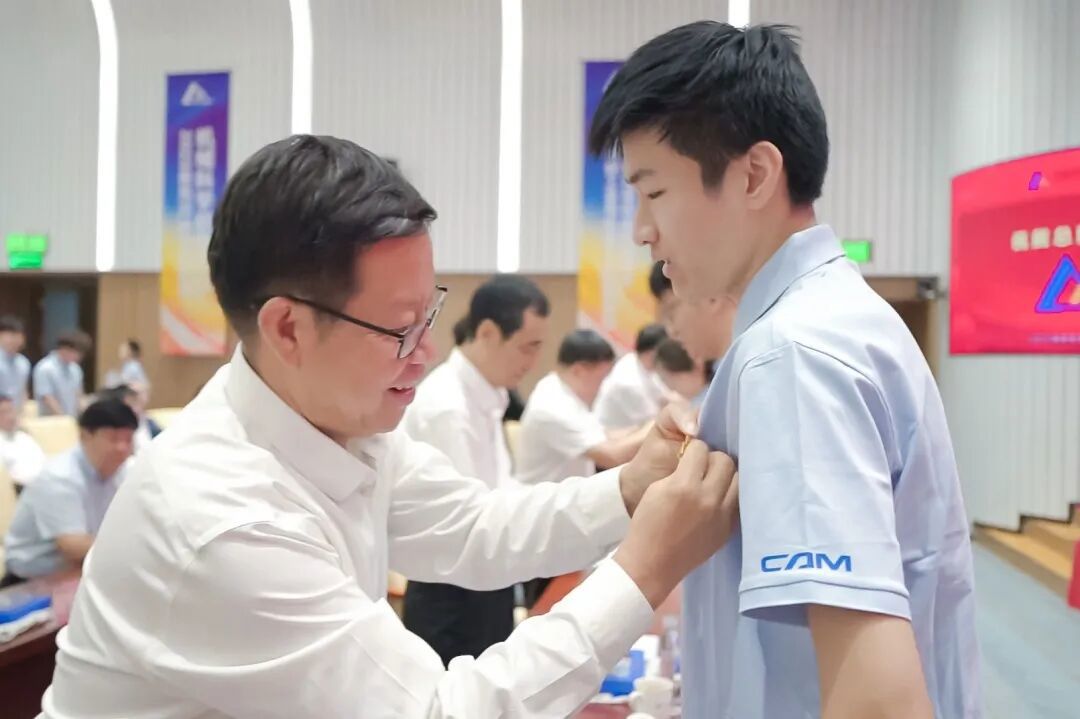 典禮上,王德成、李玉鑫及導師代表共同為新生佩戴總院徽章。這枚徽章不僅象征著中國機械總院人的身份,更承載著“以提升中國裝備制造水平為己任”的使命與榮光。優秀導師獎、最受歡迎教師獎、新生入學獎學金和優秀課程獎獲獎代表上臺領獎。新生代表手捧鮮花向導師們獻上誠摯敬意與節日祝福,表達莘莘學子的感激之情。