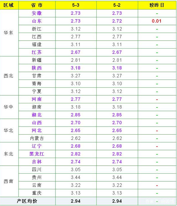 - 2020-05-03 今日全國各產區雞蛋價格,五一后基本平穩