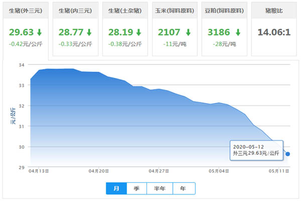 - 2020-05-06 五一收假,今日國內生豬價格全線下跌!