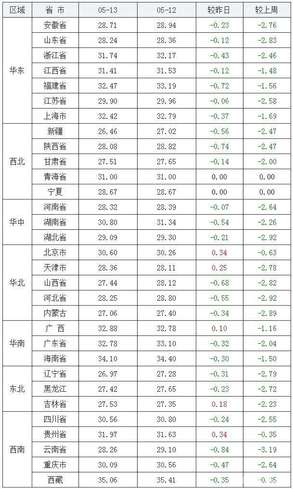 - 2020-05-13 全國豬價今日漲跌表,漲價的多屬北方