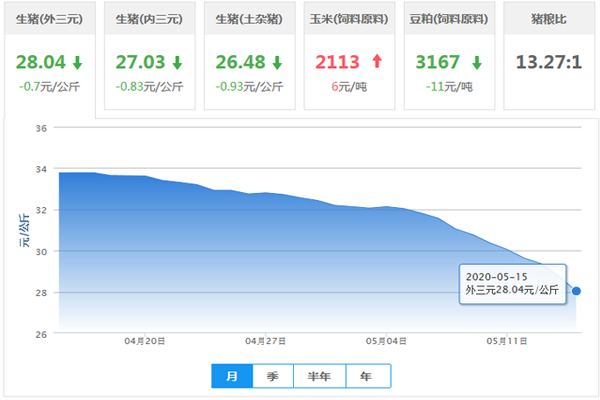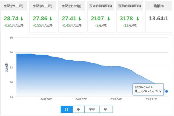 - 2020-05-14 今日生豬價格全國全線下跌,無上漲省市!