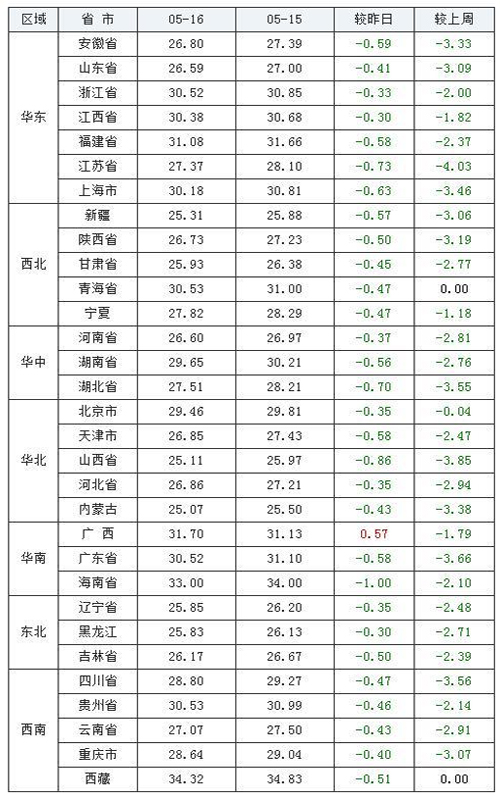 - 2020-05-16 今日豬肉價格行情,全國飄綠局勢仍在繼續
